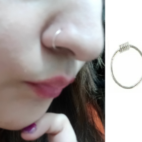 Pure Silver (chandi) Nose Ring with Spring Shaped Lock For Women