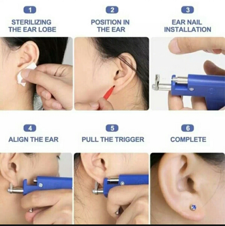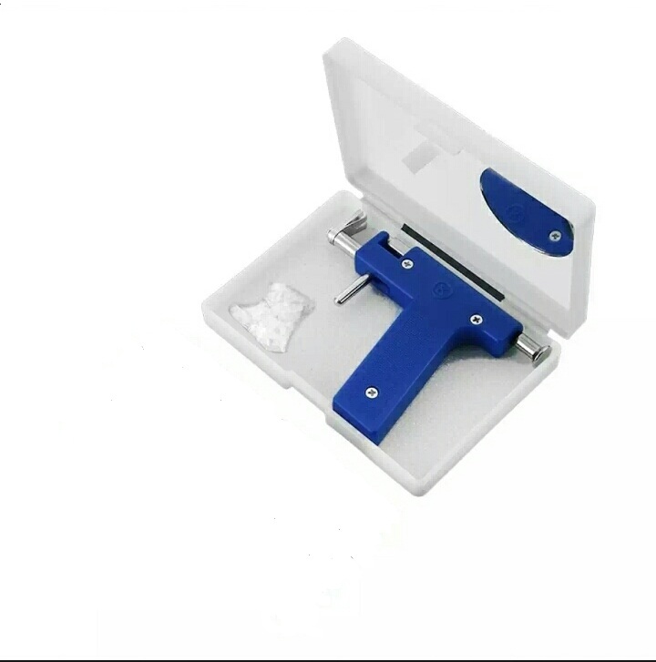 Professional Stainless Steel Ear and Nose Piercing Tool Kit Machine with Ear Studs and 1 Real chandi Nose Ring